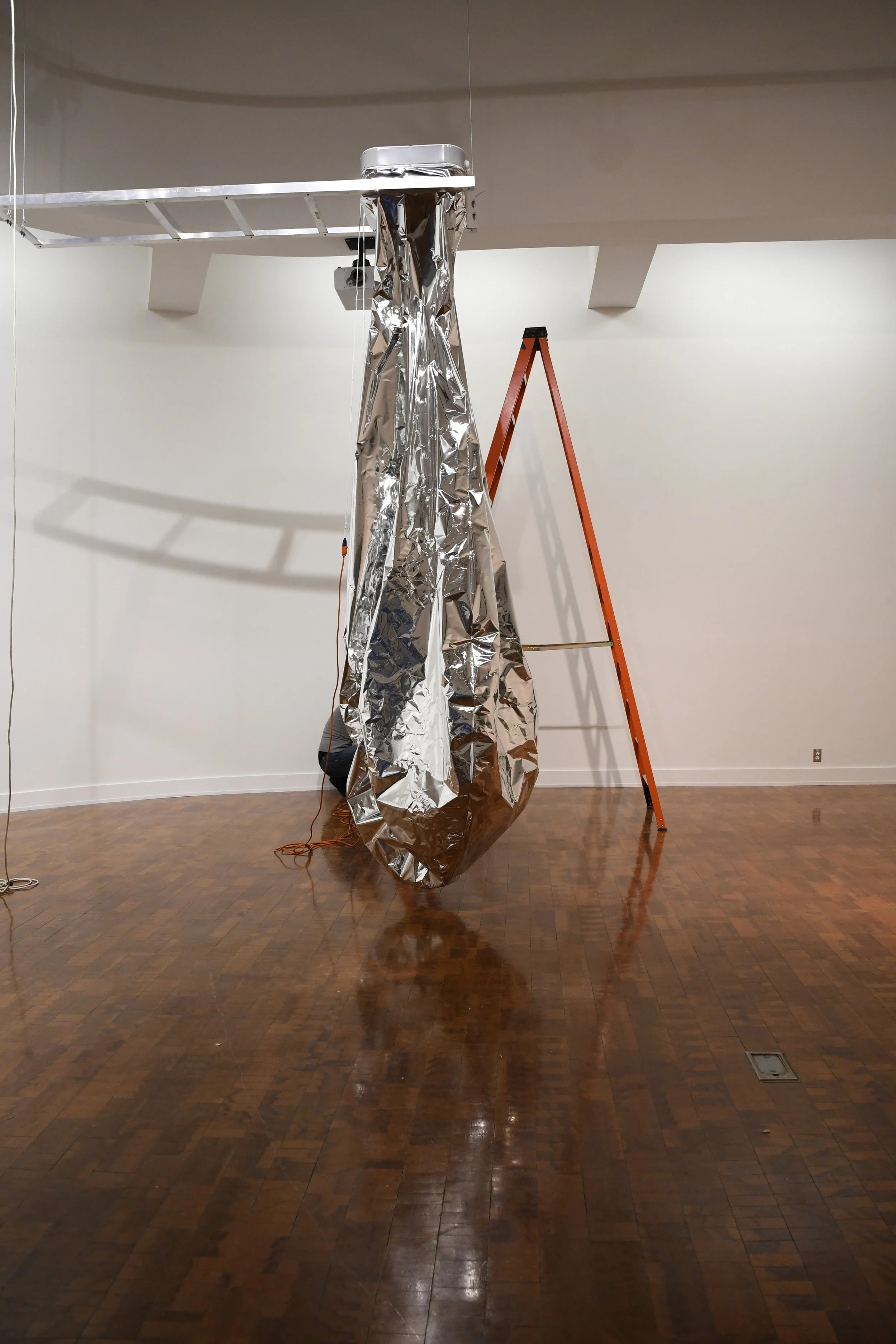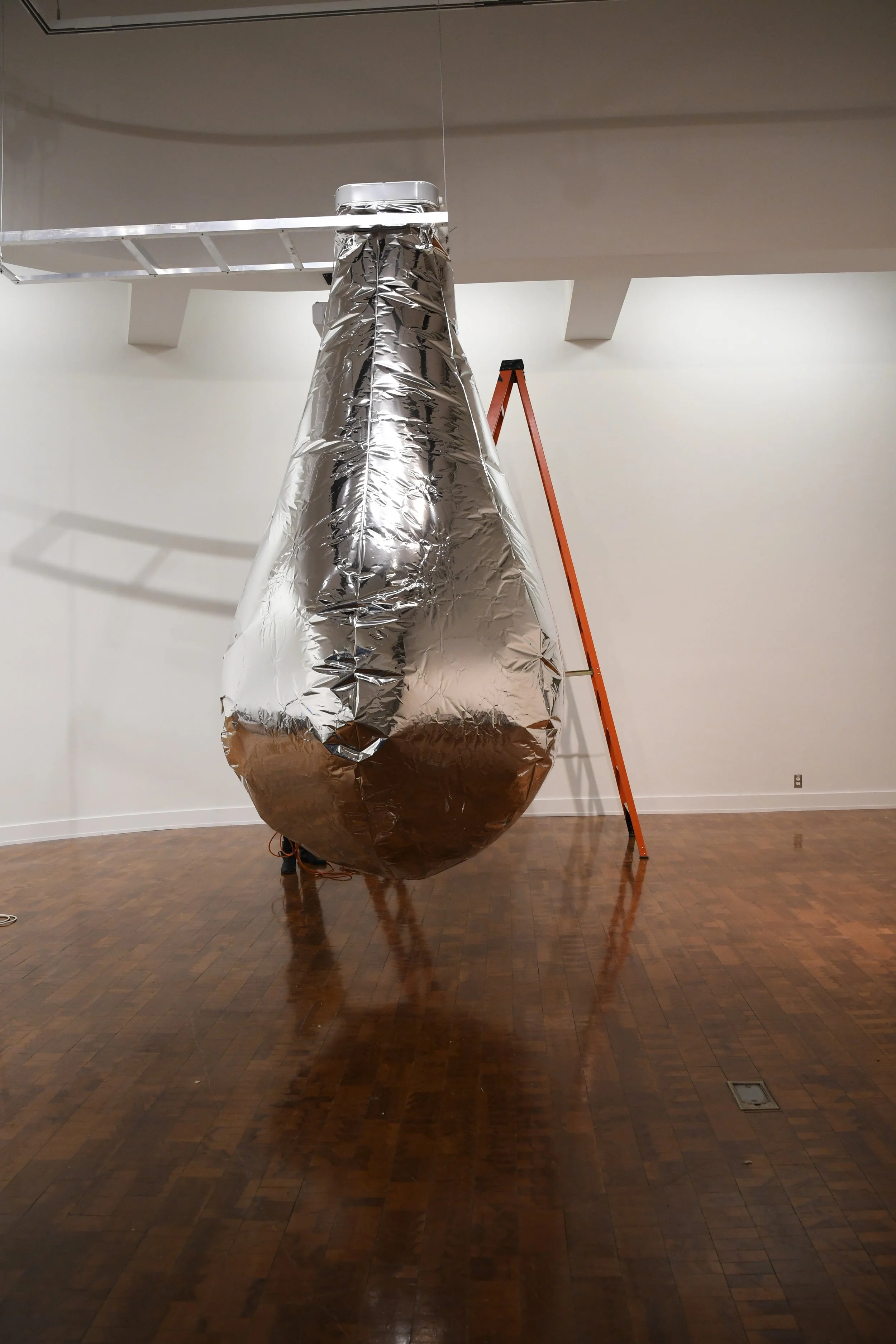 The Air Hugs installation is a responsive environment activated by the color red, which receives, tracks, and moves with the passerby causing the actuated material to produce a calculated gentle breathing, contractions of rustling sounds, and fields of reflection and light. When the large-scale inflatable lungs fill with air, they encase and enclose the space around the body, offering a deliberate, delicate, and gracious hug. Rekindling the architects’ experimental side, the Air Hugs installation treats the gallery as a petri dish for combining space and computation to cultivate contemporary forms of experience. It explores the spatial effects of the large-scale pneumatically actuated lungs controlled with real-time computing and image recognition techniques. Reasonable yet absurd, the title draws from the use of air as a primary material and the hug, which offers an immediate awareness of one’s body and other bodies, and of the space between, or lack thereof, recalibrating human scale and enhancing social interactions. Combined air and hugs offer an otherness, which excites our present temporal existence and moves beyond the rigidity that most often structure our built environments.